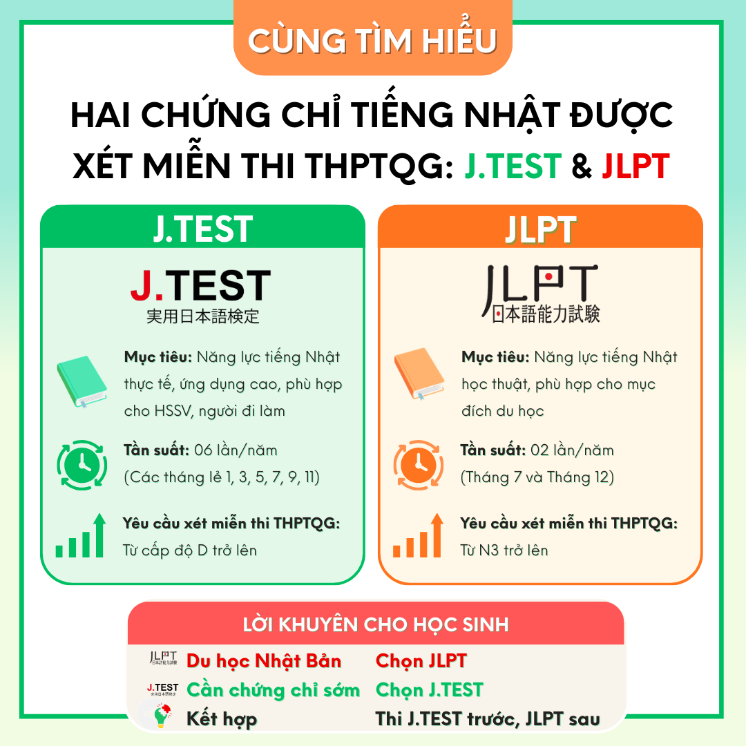 Đặc biệt, nếu không may lỡ nhịp với kỳ JLPT tháng 12, J.TEST tháng 1 và tháng 3 năm tiếp theo chính là “cứu cánh” hoàn hảo để bạn kịp chuẩn bị hồ sơ xét tốt nghiệp và đăng ký thi THPTQG.